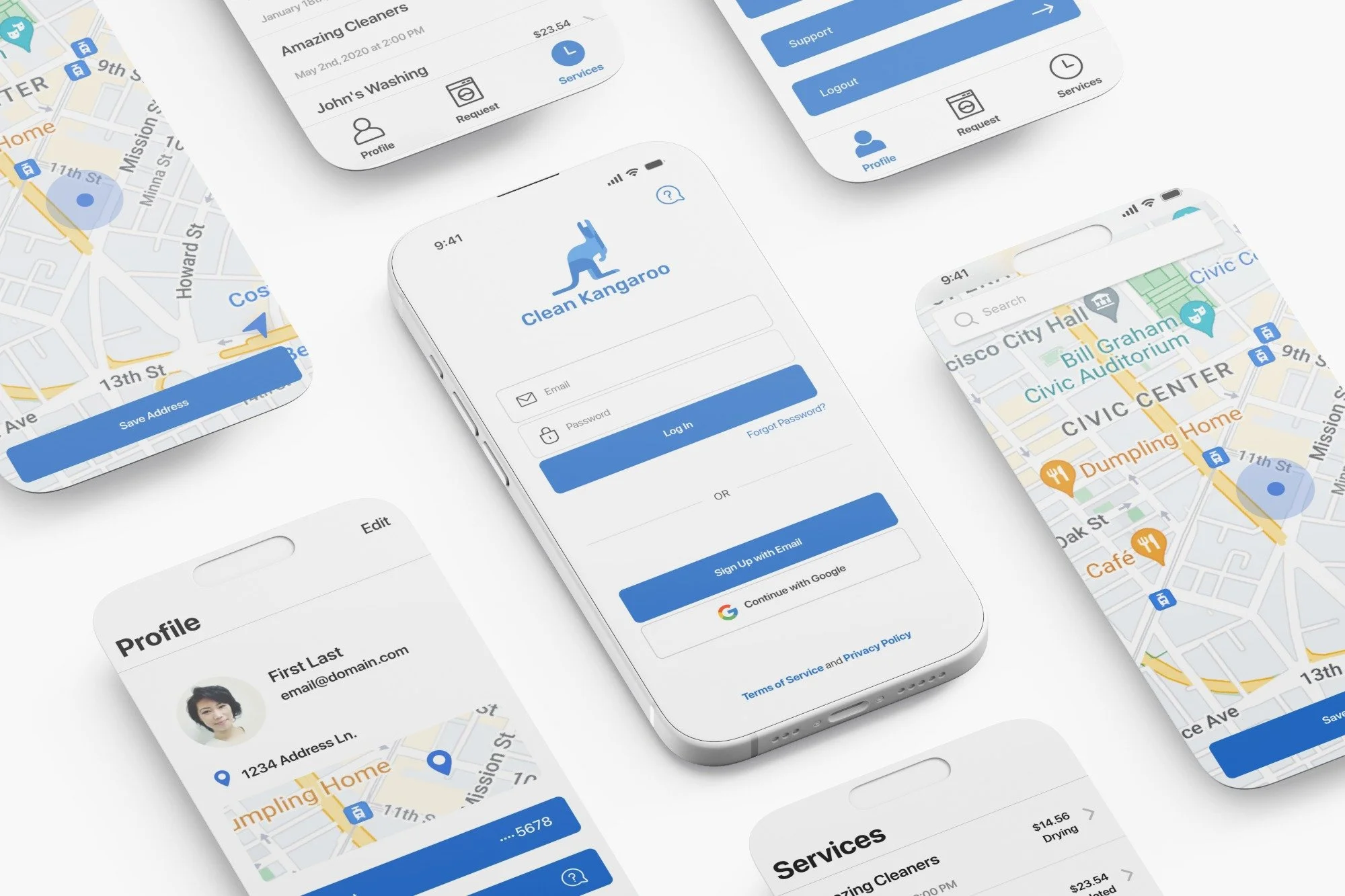 This project focused on the UX/UI redesign of Clean Kangaroo, an on-demand laundry delivery app. The objective was to improve usability, visual clarity, and user trust while aligning with a predefined client feature list.