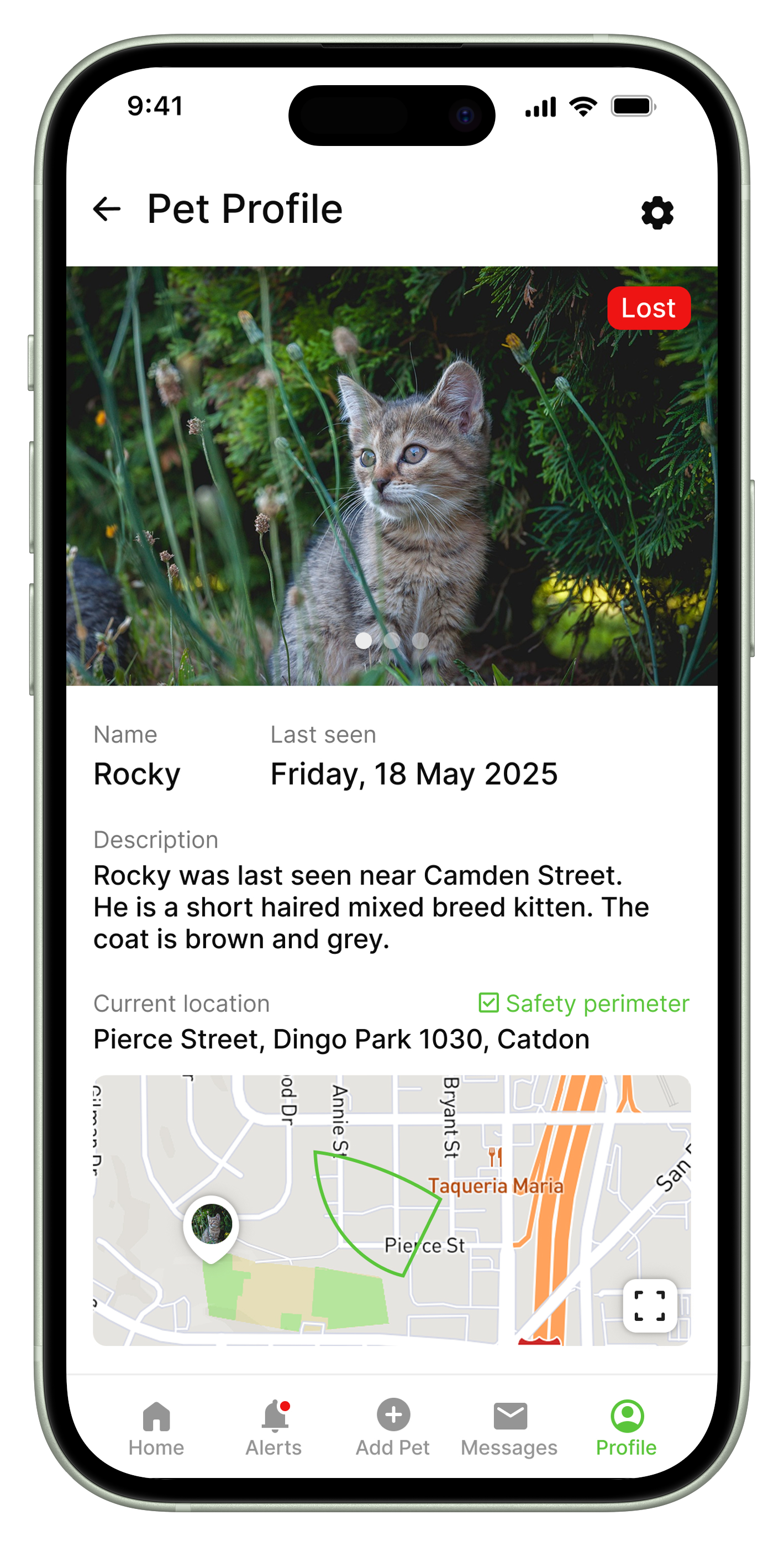 Iteration: Added a distinct Lost/Found indication on the pet profile to resolve the lost/found status.