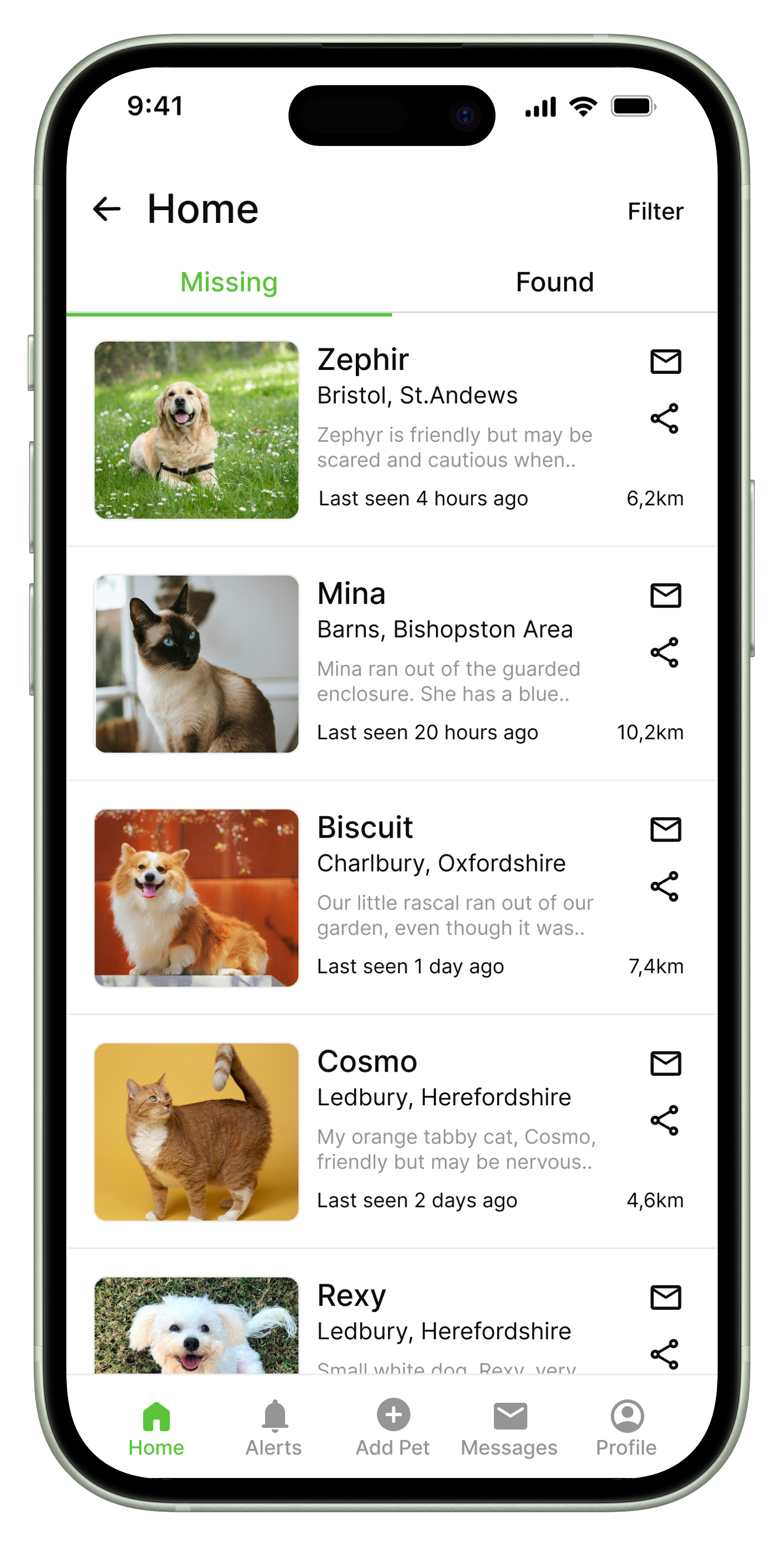 8. “Pet Lost/Found” Feature